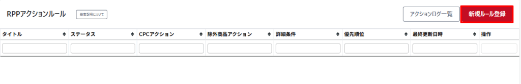 RPPアクションルールの「新規ルール登録」ボタンをクリックします。
