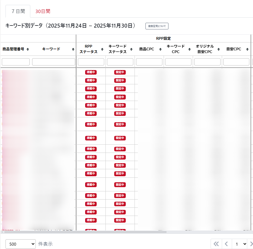| RPP集計データ | RPP平均掲載順位 | 対象キーワードのRPP掲載平均順位です |