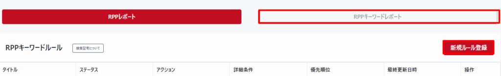 RPPキーワードレポートタブをクリックし、新規ルール登録ボタンをクリックします。